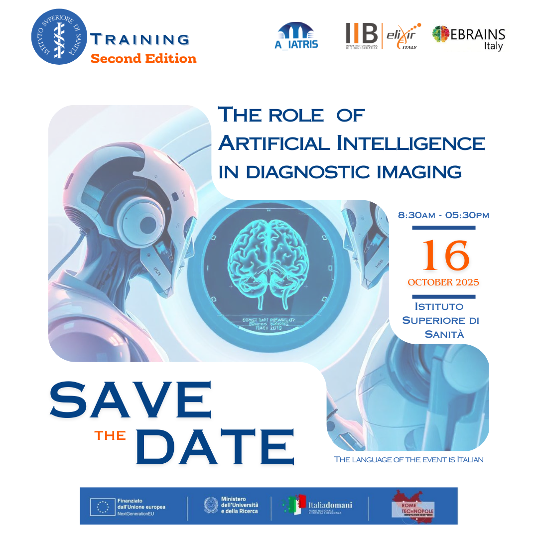 Don't miss the 2nd edition of the event The Role of Artificial Intelligence in Diagnostic Imaging, organized by the Italian National Institute of Health (ISS), A_IATRIS, ELIXIR-IT ed EBRAINS-Italy: